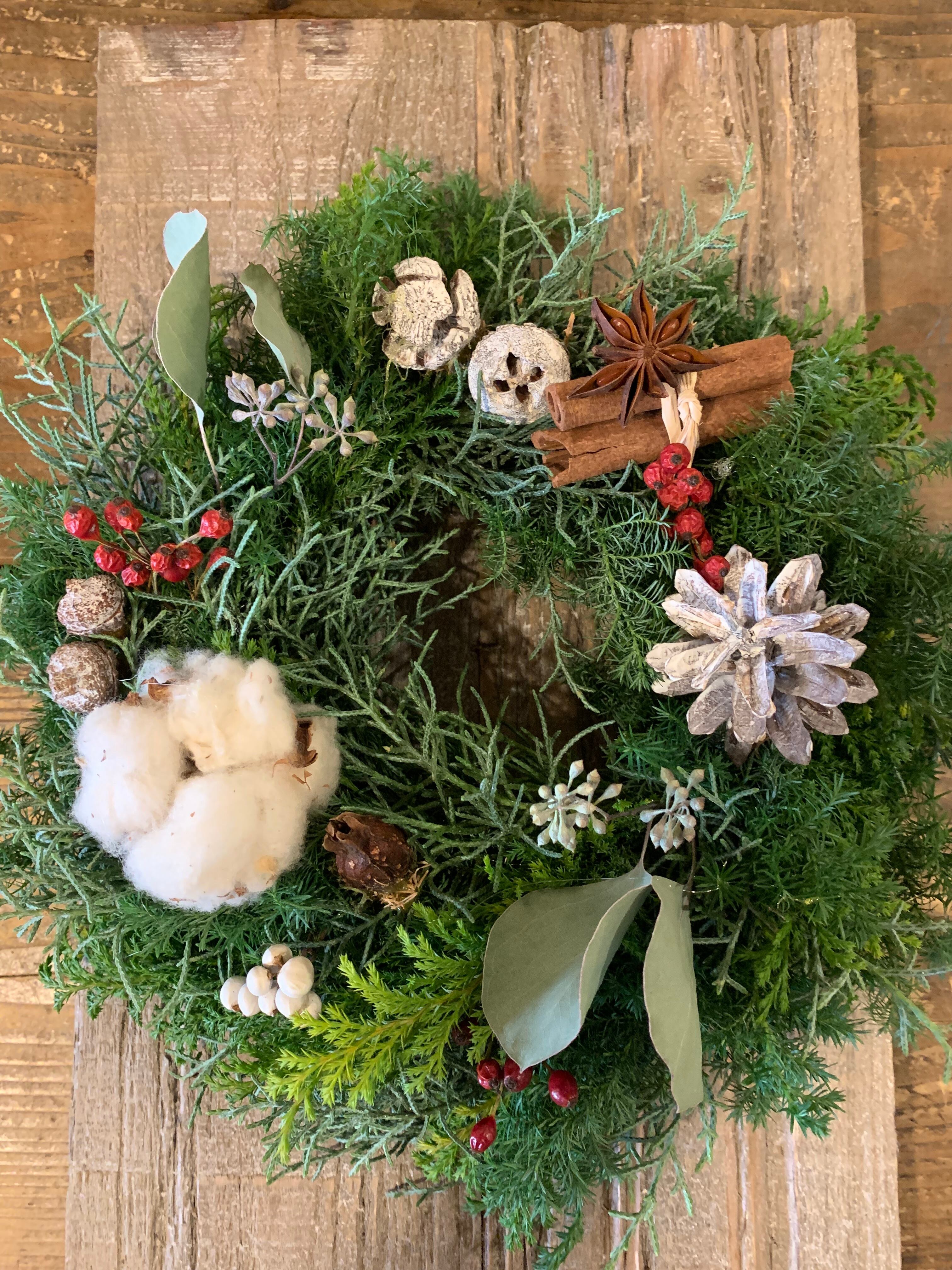 フレッシュ針葉樹のクリスマスリース。