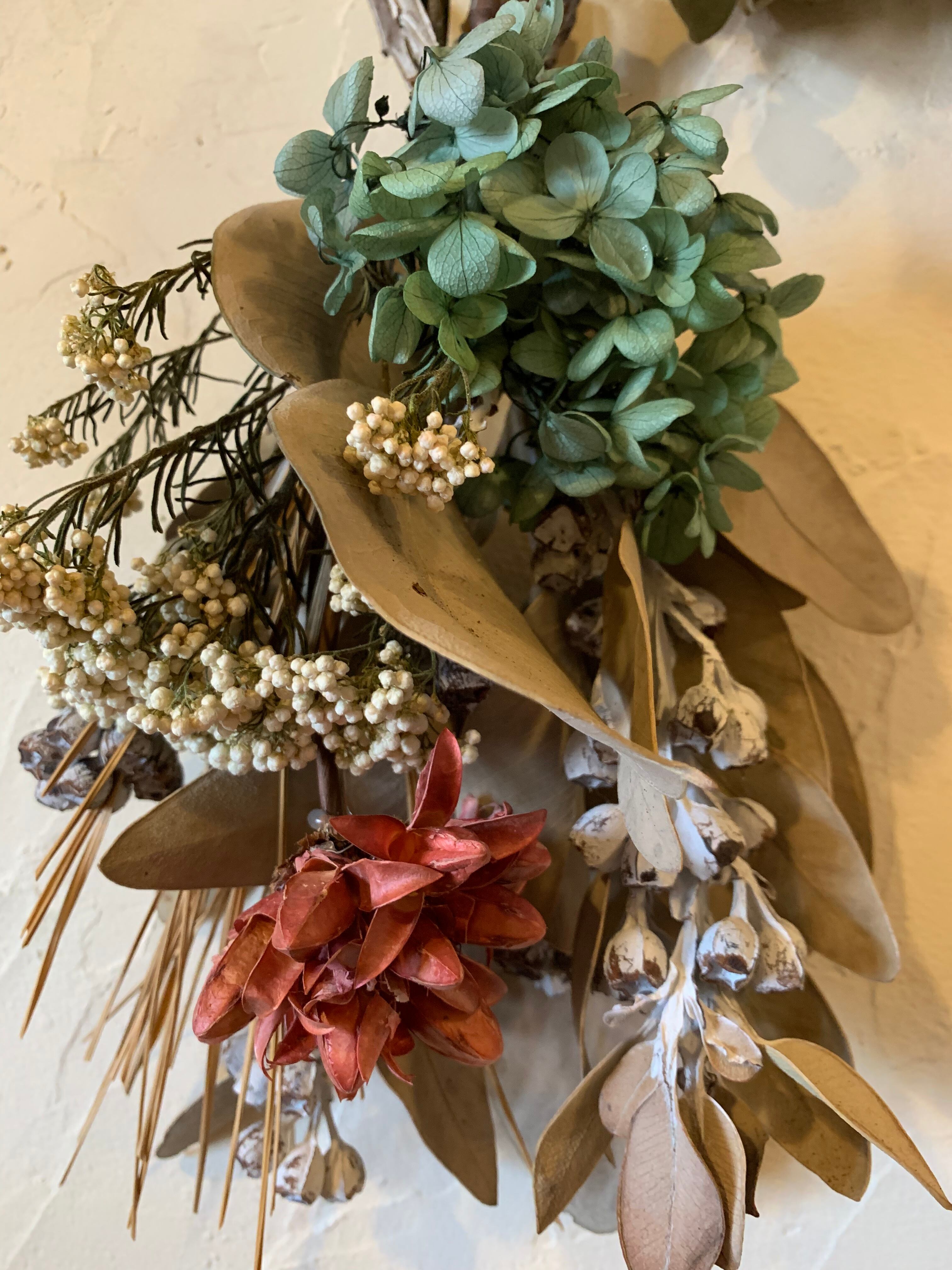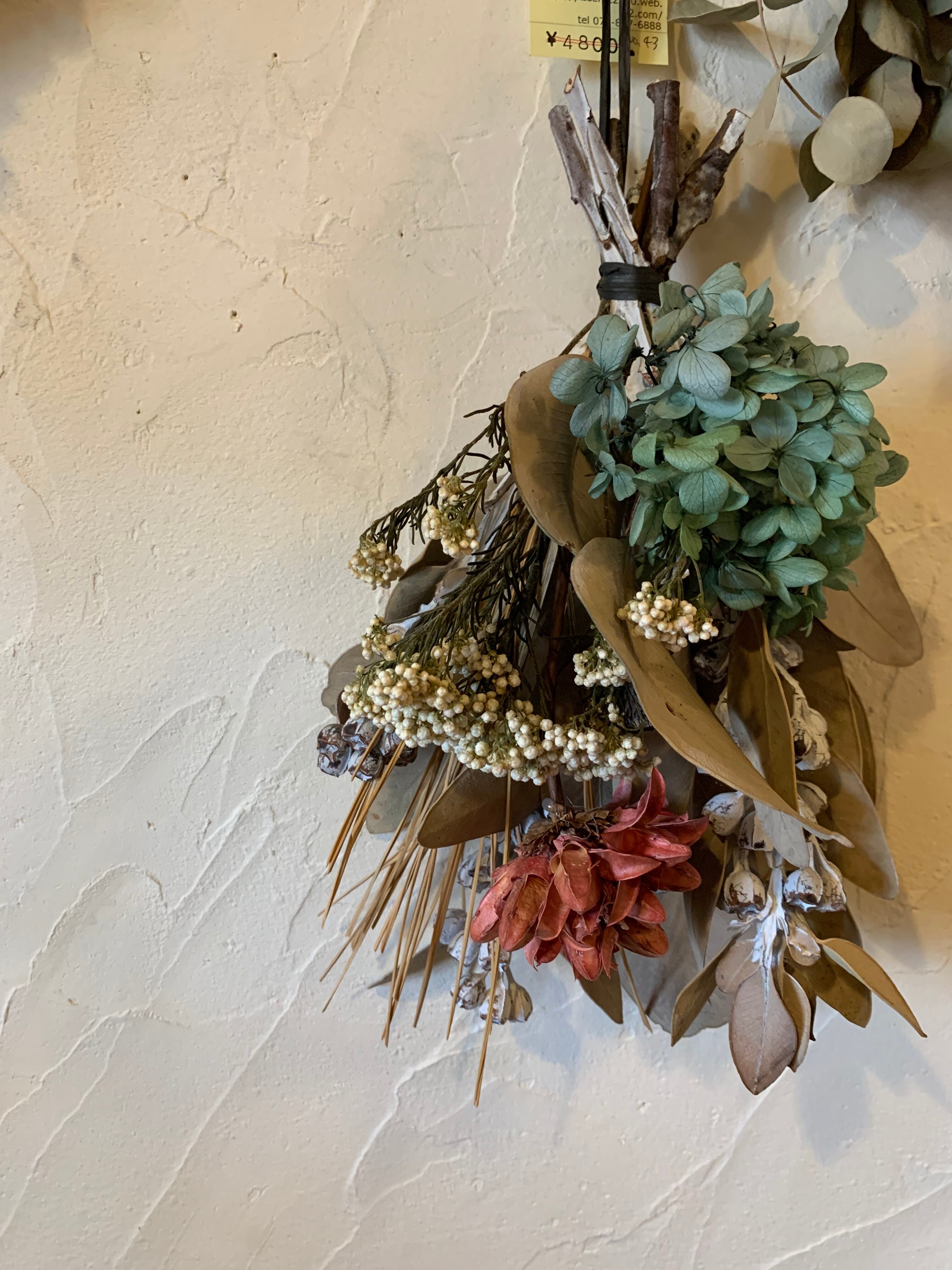 紫陽花、ユーカリテトラゴナ、ライスフラワー他